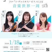 11月8日(土)より、「フルート・ヴァイオリン・ピアノによる音楽世界一周」のチケットを発売いたします。知多市勤労文化会館×中部フィルハーモニー交響楽団 コラボ企画 シリーズ4回目です。 日時:2026年1月18日(日)1 …