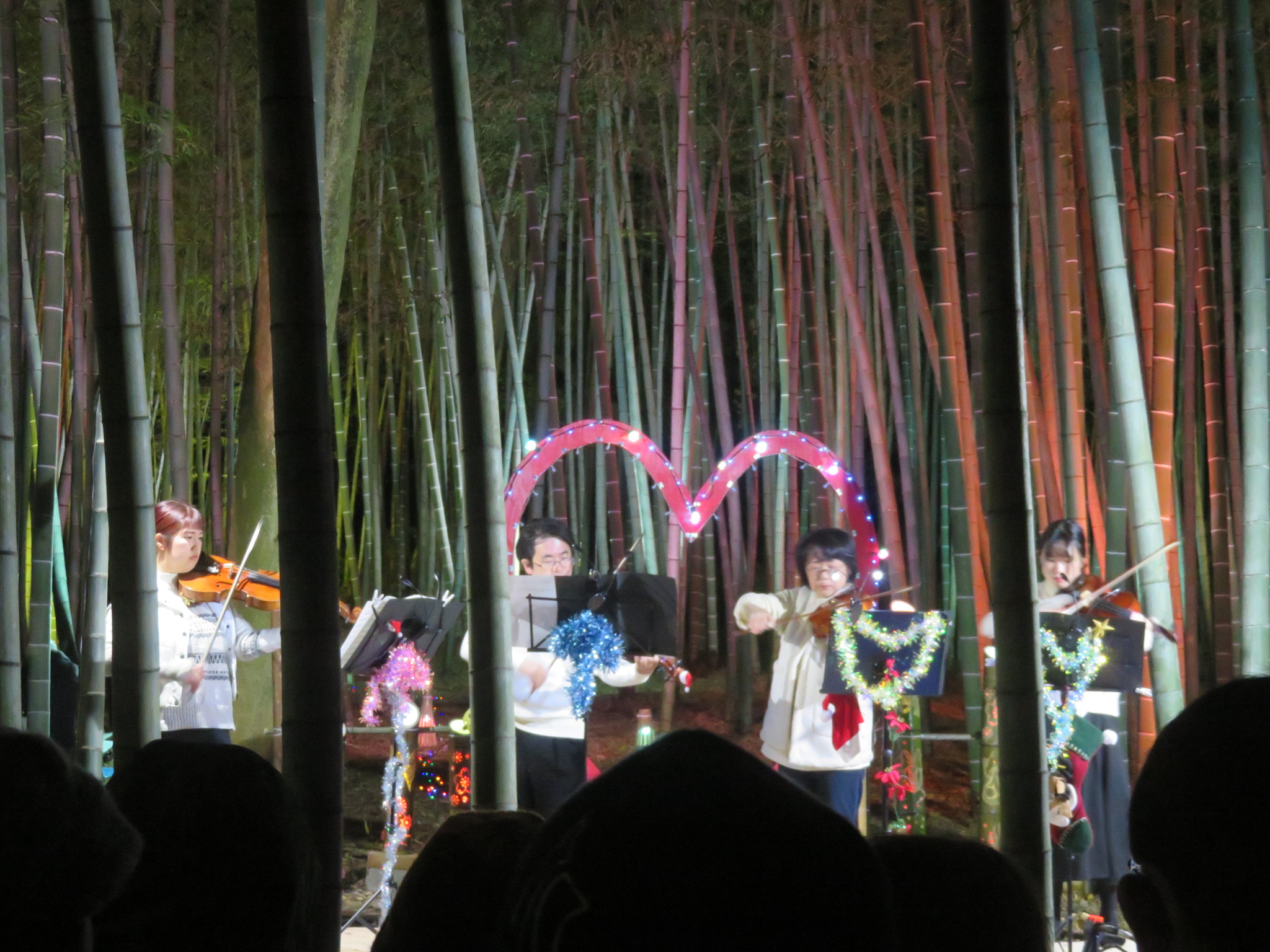 旭公園の竹林ライトアップイベントに知多オケメンバーが参加しました。ビオラプレイヤーの4名がミニコンサートでクリスマスを演出。たくさんの人に囲まれて幻想的な世界を楽しんできました。明日8日は4名のフルーティストが清らかな笛の音で竹林を彩ります。17:15頃スタートです。お楽しみに💛