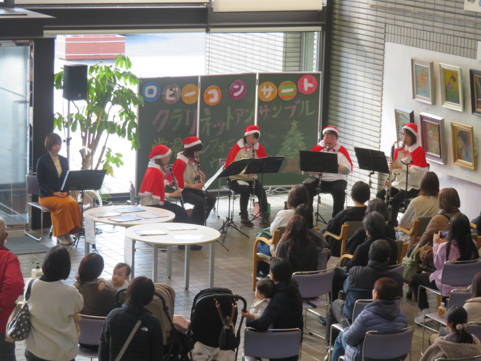 クリスマスの曲を中心に、クラリネットの綺麗な音がロビーに響きました。かわいい赤ちゃんのお客様も聴きに来てくれました!