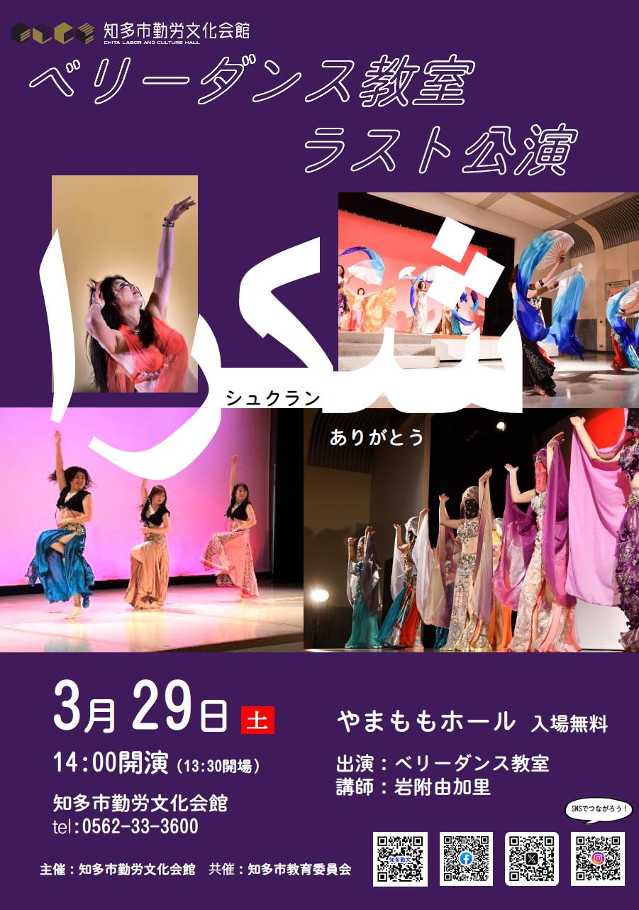 ベリーダンス教室の最後の公演になります。入場無料です。ぜひ、お越しください!