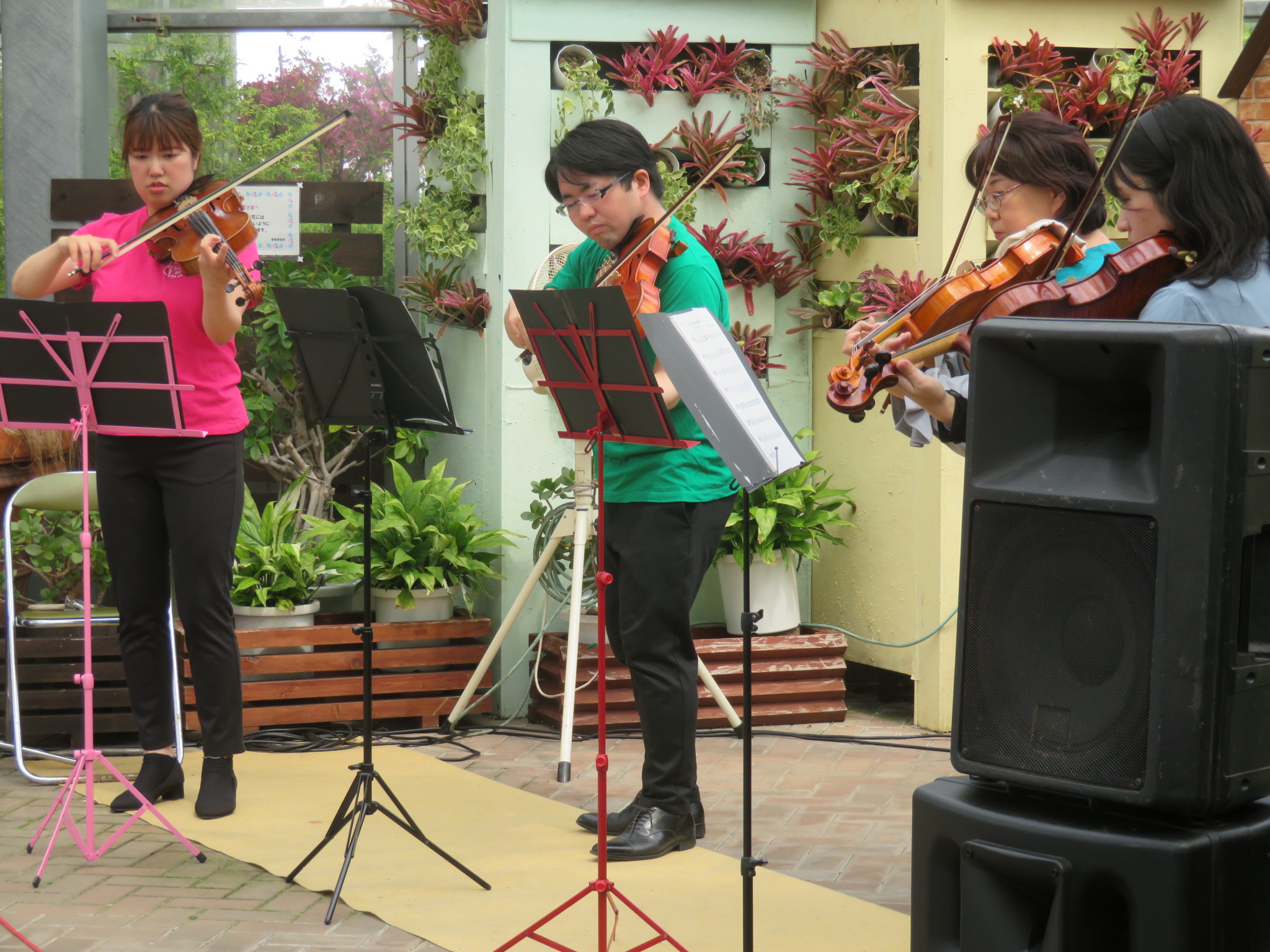 知多オケビオラ奏者4名が20日(日)の佐布里ふれあい公園のイベントで四重奏を披露しました。 「花の館」という温室ステージで春のフェスティバルに参加させていただきました。弦楽器のメロディーを花々も聞き入っているようでした🌸いい季節にはいい音楽がぴったりです。