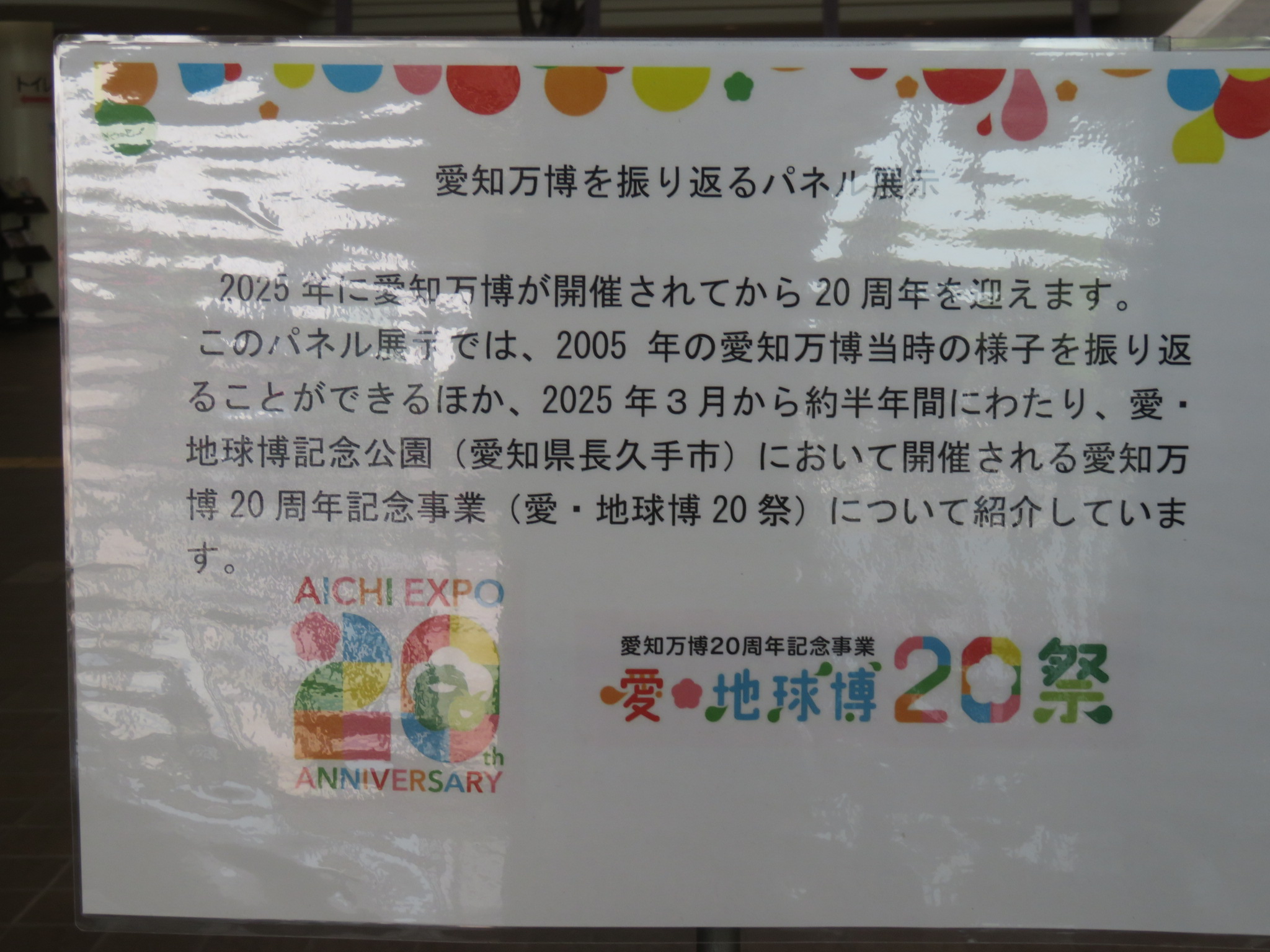 勤文のロビーにて愛・地球博を振り返るパネル展示を始めました。大阪万博に行こうか迷っているアナタ、愛知万博をしっかりと思いだして、気分を盛り上げて楽しんでみませんか。