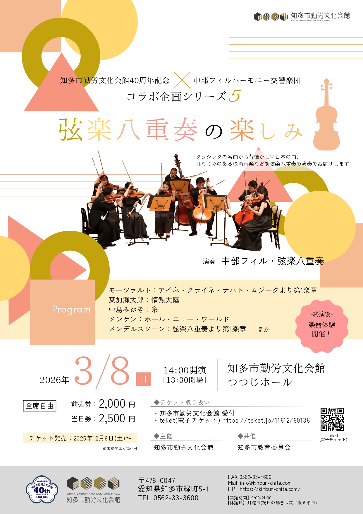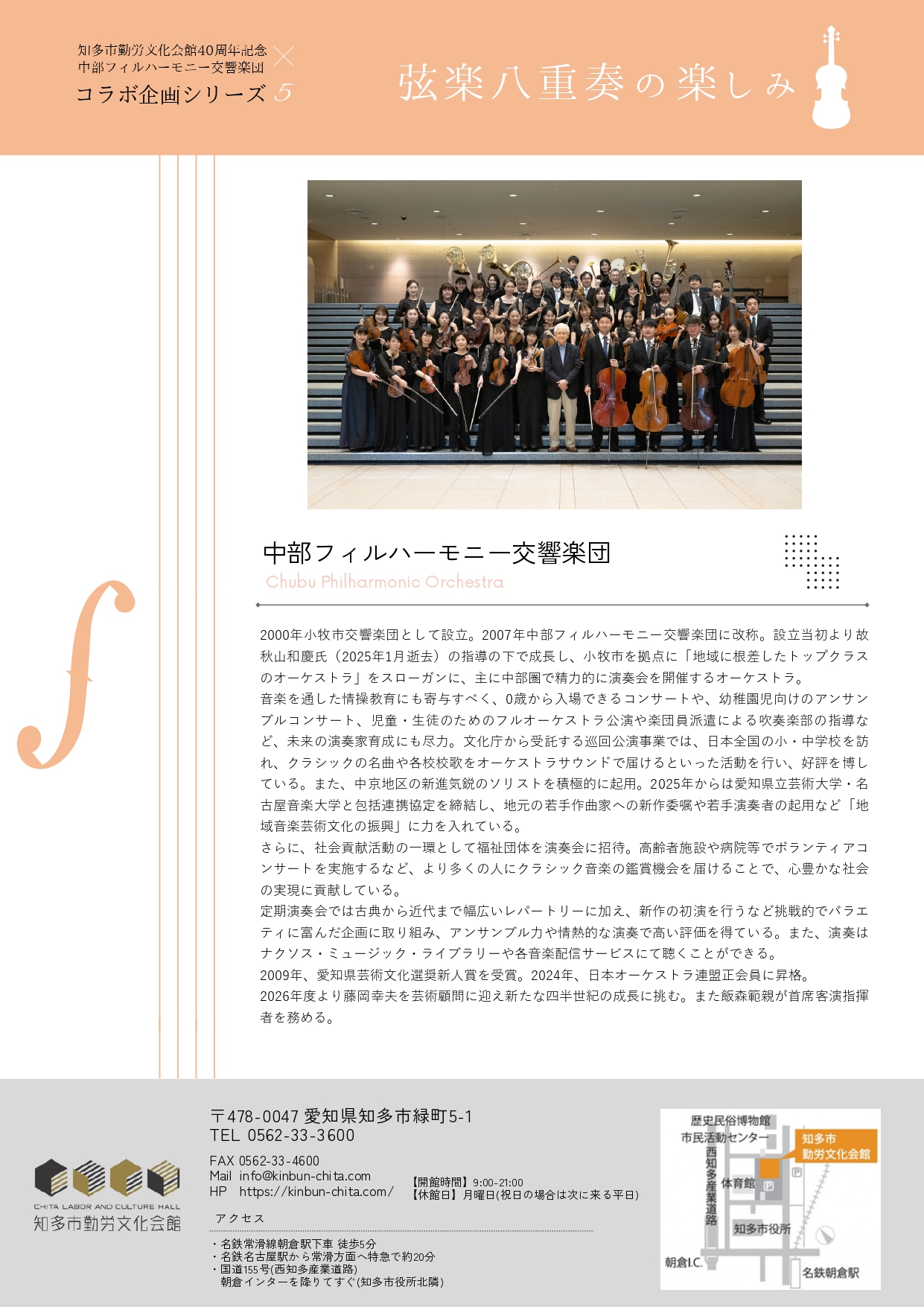 「中部フィルハーモニー交響楽団コラボ企画シリーズ5 弦楽八重奏の楽しみ」