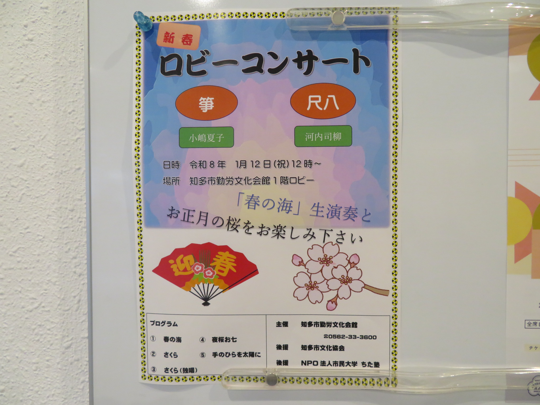 ★令和8年度4月~7月までのロビーコンサートの出演者募集中です!募集期間は、1月6日~1月20日までです。こちらも興味のある方は、お問い合わせください。問い合わせ先:0562-33-3600