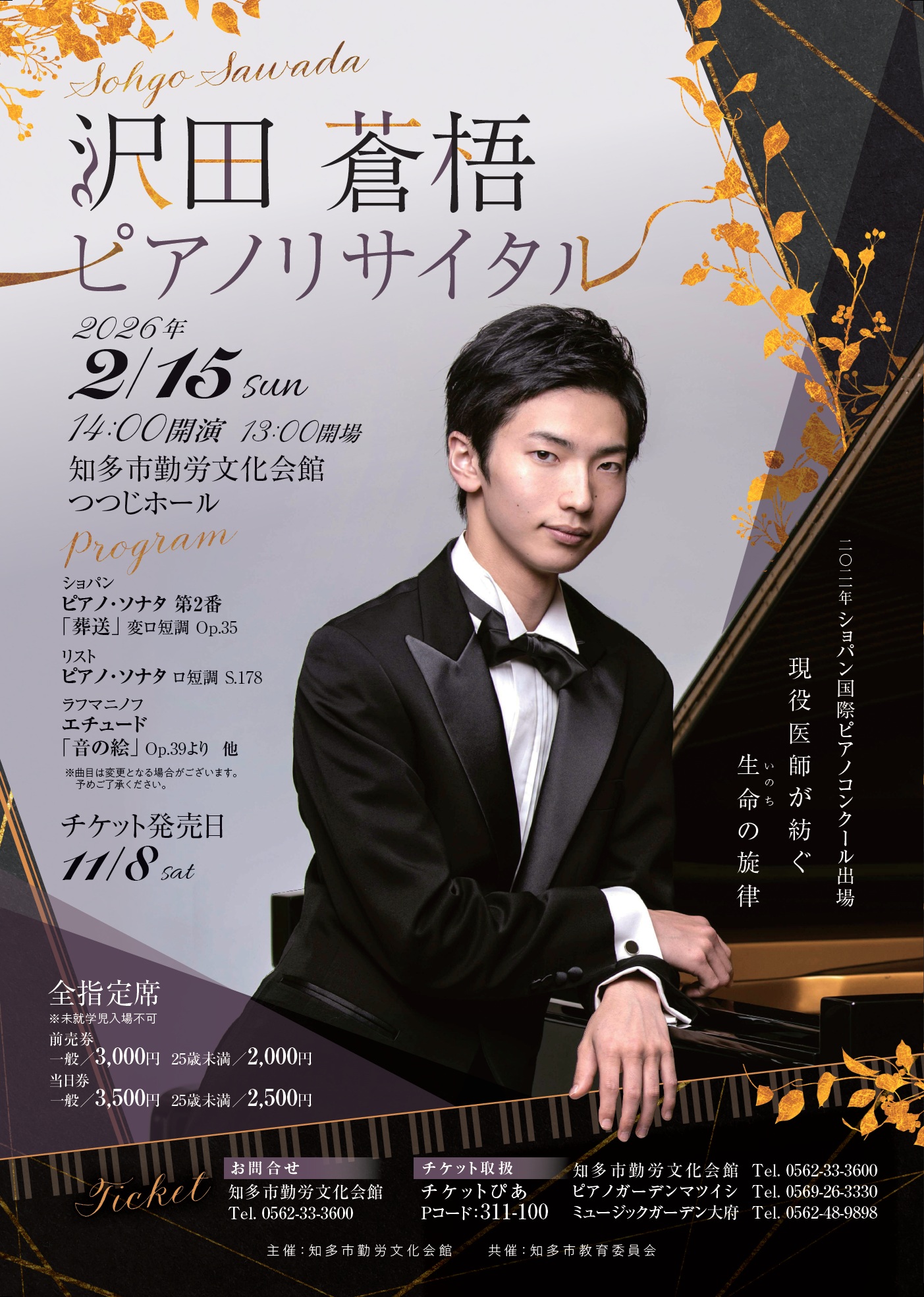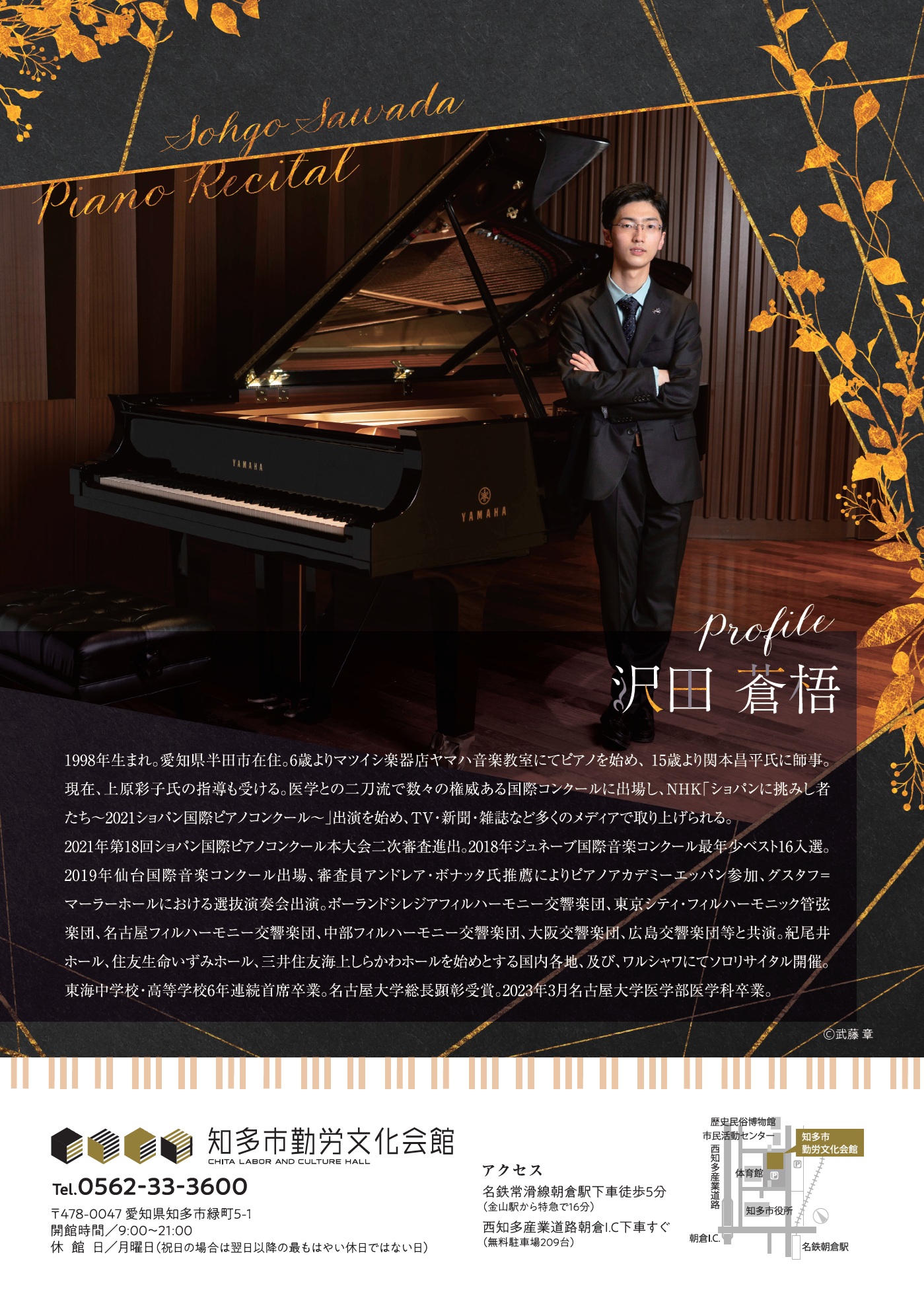 2021年ショパン国際ピアノコンクール出場で現役医師の沢田蒼梧さんによるピアノコンサートです。ぜひこの機会に沢田蒼梧さんの音楽をお楽しみください。