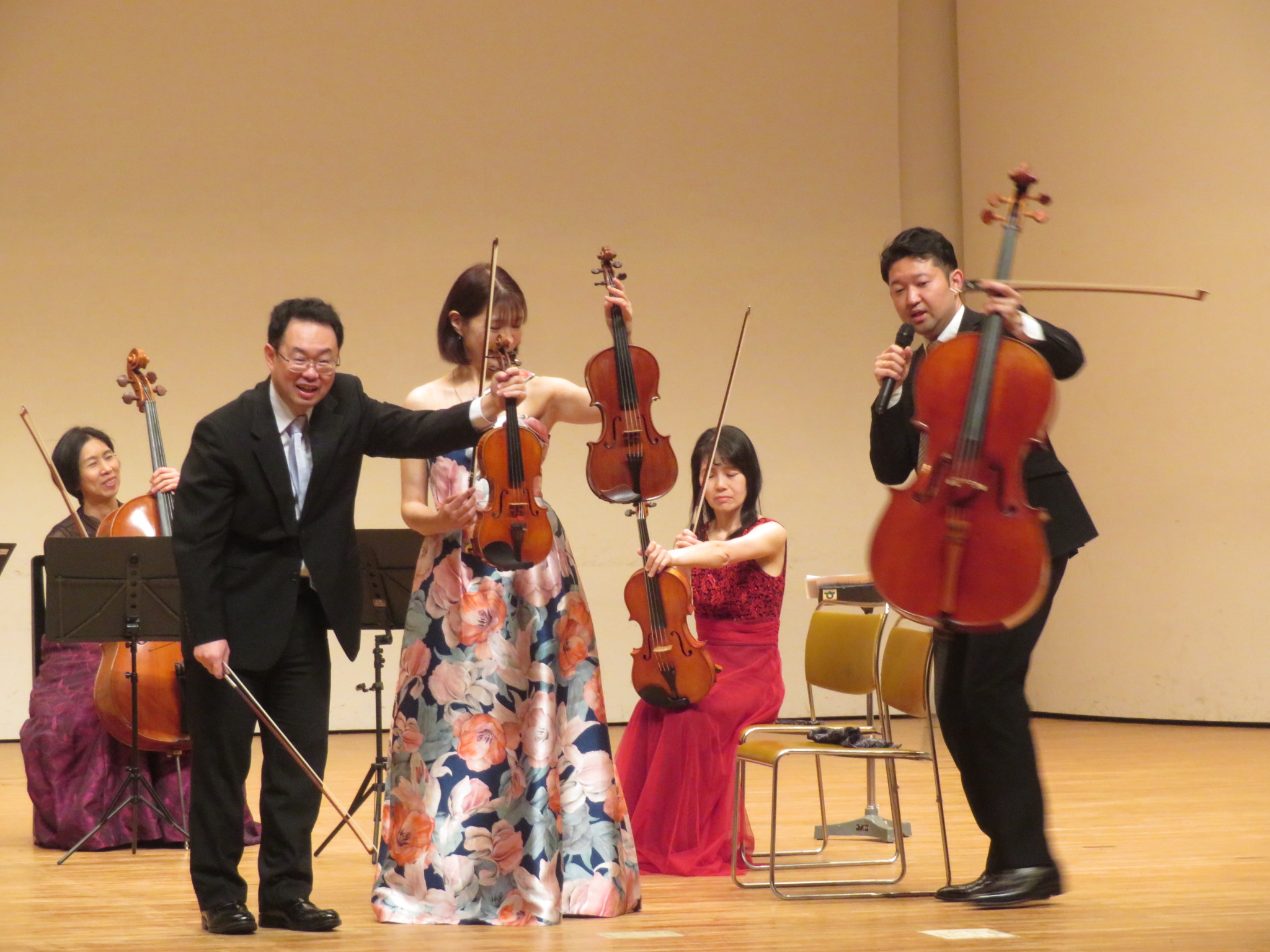 コラボ企画シリーズ5「弦楽八重奏の楽しみ」終演しました。プログラム前半はクラッシック系、後半はポピュラー系。皆さんが聞き覚えのある曲目で楽しんでいただけました。最後の曲はノリノリで、ヴァイオリンの平光さんが客席へ繰り出し、お客様を沸せてくれました。弦楽器の構造の説明もあり、終演後は楽器体験で、お客様も弦楽器を初めて手にして楽しんでいただけました。素敵な演奏に体験。楽しいひと時でした。
