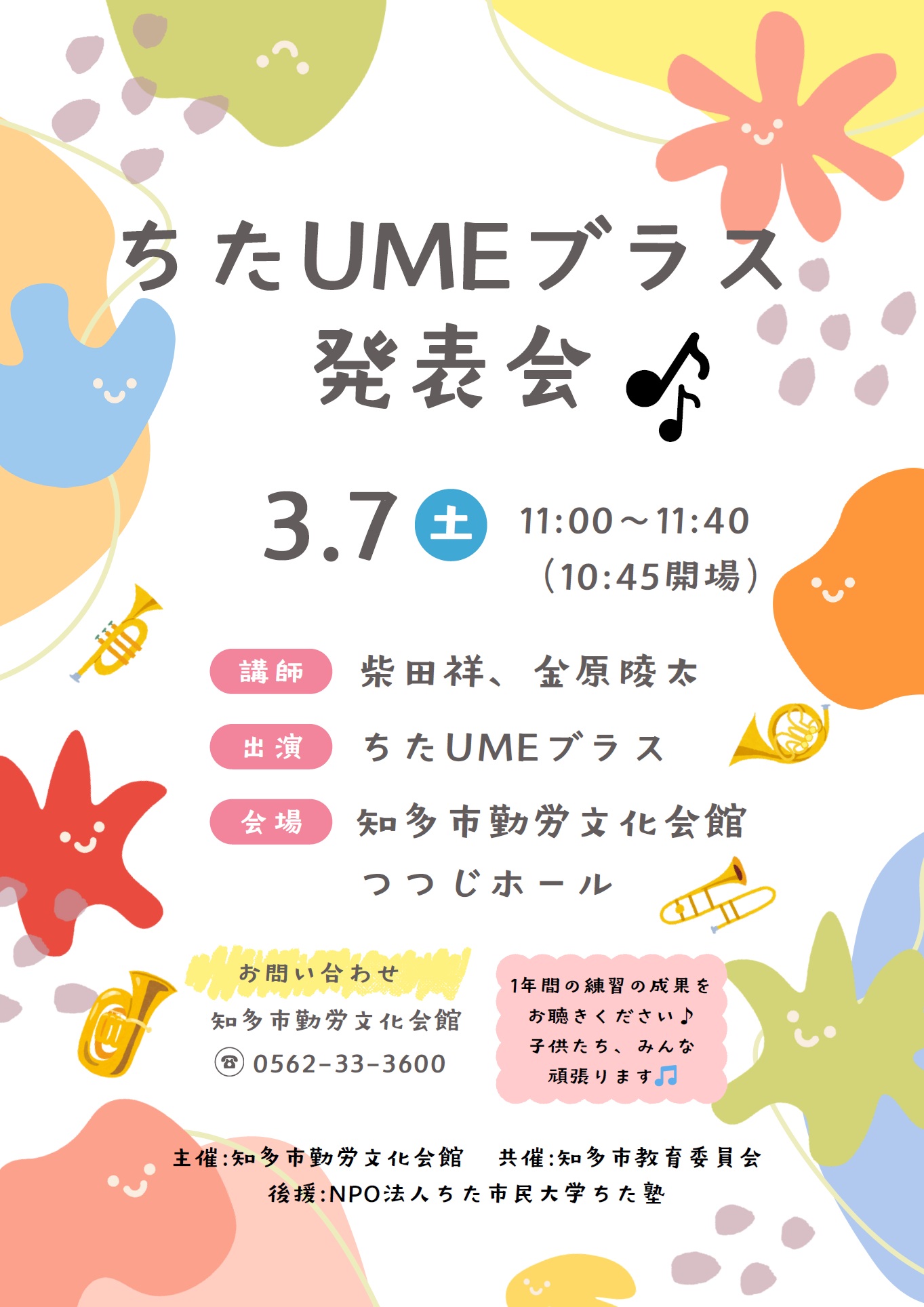 | 【概要】 | 知多市近隣を中心に音楽活動しているみなさん、知多市勤労文化会館のロビーで演奏してみませんか?